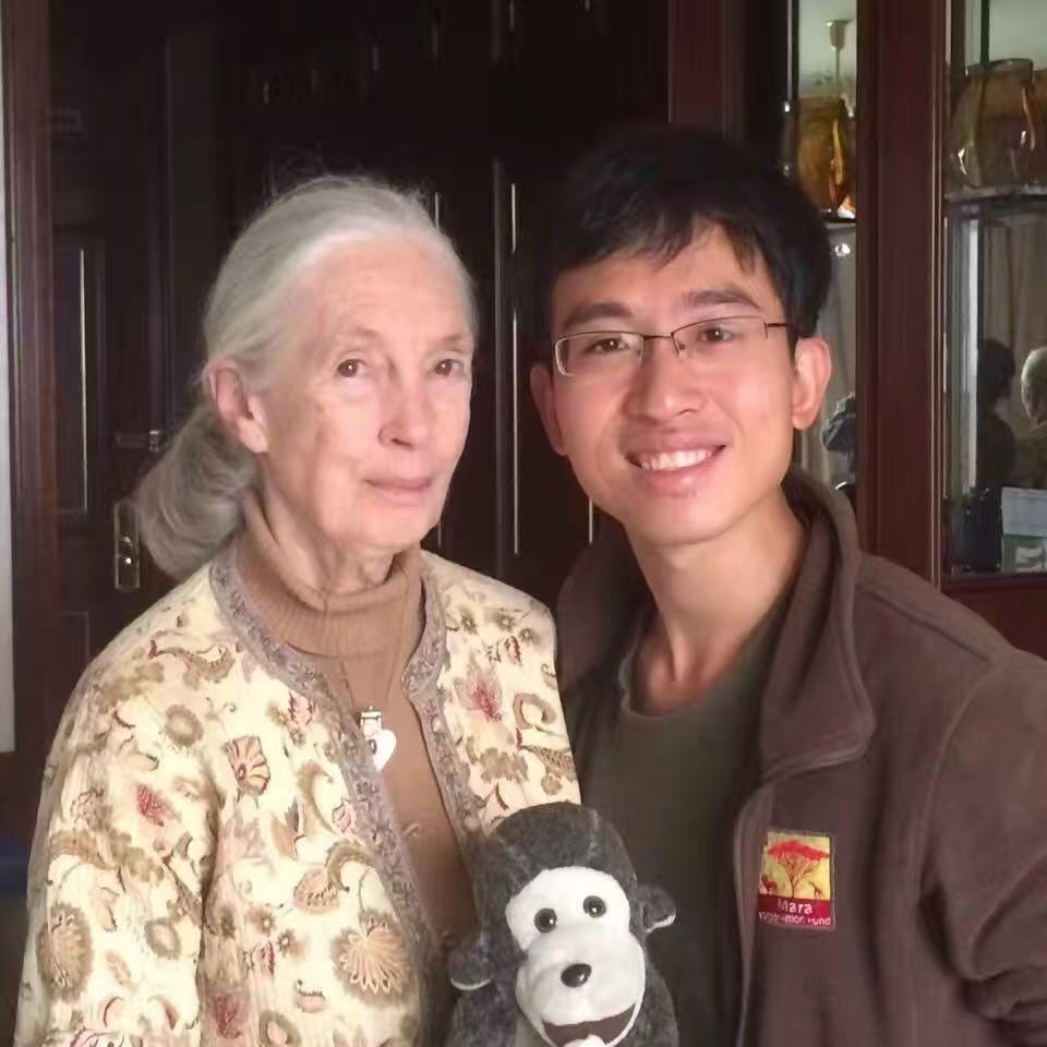 黄泓翔从小喜欢动物,因为珍·古道尔的故事,他有了去非洲的想法。“研究生毕业后,我真的去到非洲,走上了野生动物保护的道路。”那是2013年,黄泓翔参与南非金山大学的项目,前往非洲做象牙犀牛角贸易的调查报道。这个项目结束后,黄泓翔陆续以中国调查记者的身份,发表了数篇有关象牙贸易的调查报道,这也让他有机会认识了从小的偶像珍·古道尔。